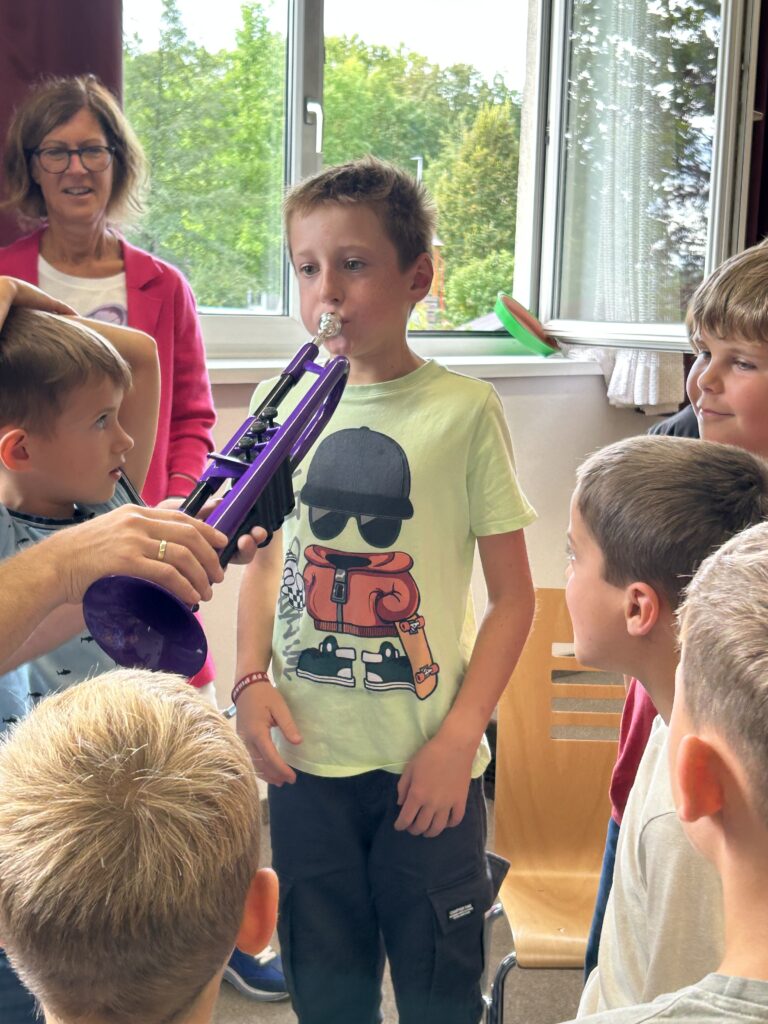Der Besuch in der Musikschule in der ersten Schulwoche hat bei uns schon Tradition. Auch heuer wurden den Kindern viele verschiedene Instrumente im Plenum vorgestellt. Danach konnten die Kinder diese selbst ausprobieren. Wir sind schon gespannt auf die eine oder andere Hörprobe.