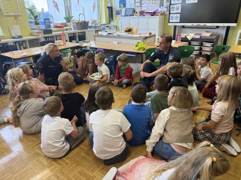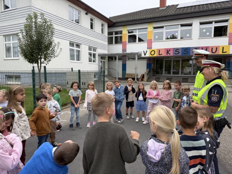 Im Projekt „Verkehrssicherheit mit der Polizei“ lernten die Kinder der 1. Schulstufe, wie sie ihren Schulweg sicher gestalten können. Gemeinsam mit einer Polizistin und einem Polizisten übten sie das richtige Verhalten an der Bushaltestelle, das sichere Überqueren des Zebrastreifens sowie das Aussteigen aus dem Auto auf dem Parkplatz. Durch praktische Übungen verstanden die Kinder, worauf sie im Straßenverkehr achten müssen. Das Projekt machte allen großen Spaß und half, das Bewusstsein für Sicherheit im Alltag zu stärken.